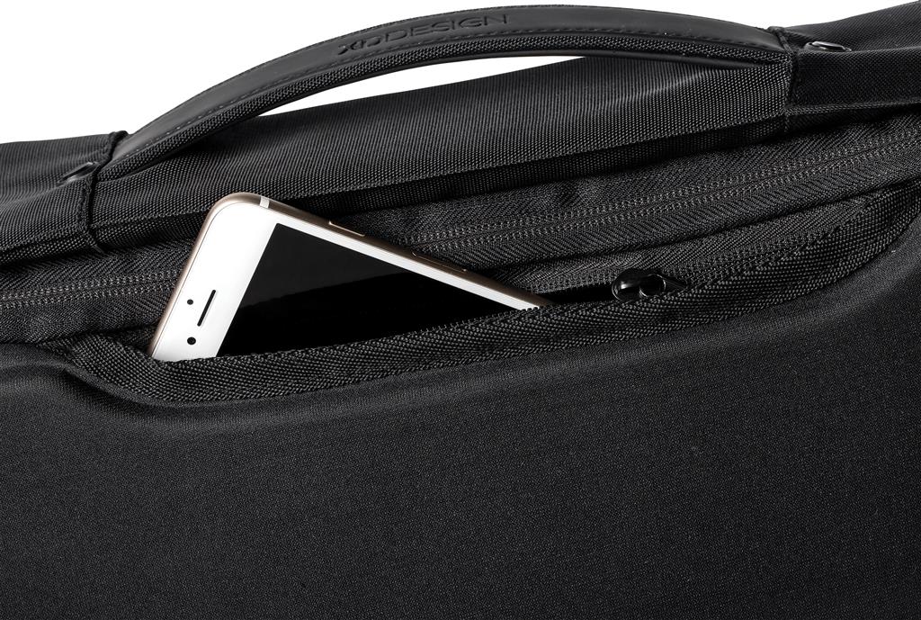 Artikelcode: GIFTS.DOM.P705.571Als u zeker weet dat uw spullen veilig opgeborgen zijn, is reizen een stuk comfortabeler. Dat garandeert deze Bobby anti-diefstal rugtas & aktentas. Gemaakt van hoogwaardig polyester en voorzien van reflecterende details voor uw veiligheid in het donker. Beschikt over gevoerde binnenvakken voor een 15.6“ laptop, tablets tot 10” en al uw andere spullen. Het ingebouwde metalen frame houdt uw spullen veilig en de tas in model. Transformeert eenvoudig en snel van rugzak naar aktentas. In de rechter schouderband zit een geïntegreerd slot waarmee u de tas kunt vastmaken aan vaste objecten. Inclusief trolleyhouder. Geregistreerd ontwerp®