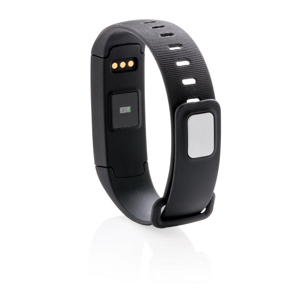 Artikelcode: GIFTS.DOM.P330.641Waterdichte (IP67) touch screen activity tracker met een kwalitatief hoogwaardig OLED-scherm. De activity tracker telt uw stappen, de afgelegde afstand, verbrandde calorieën en registreert uw slaappatroon. Inclusief dynamische hartslagmeter en bloeddrukmonitor om uw prestaties en gezondheid te verbeteren. De armband maakt gebruik van BT 4.0 en heeft een standby-tijd van 5-7 dagen op een volle batterij. De gratis APP is compatibel met IOS 8.1 en Android 4.4 en hoger.