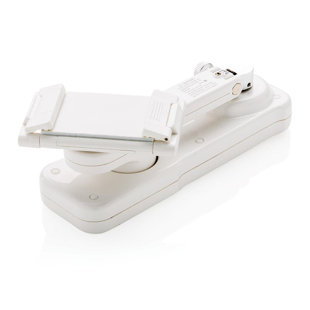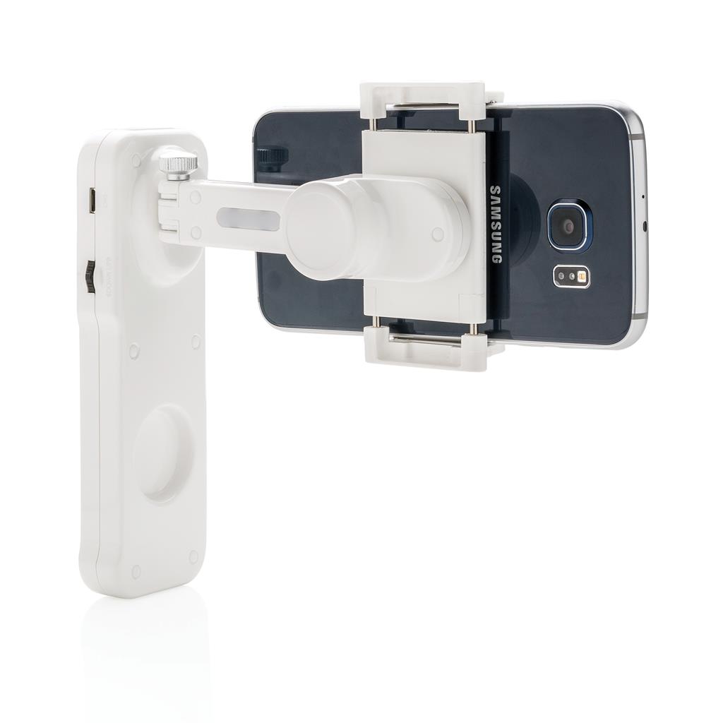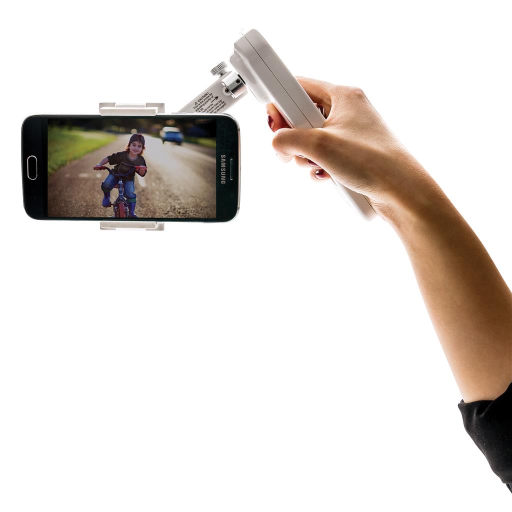 Artikelcode: GIFTS.DOM.P301.233Met deze state of the art dubbel-as stabilisator heeft u nooit meer deinende filmbeelden of foto’s in een ongewenste hoek. In een handomdraai wordt uw mobiele telefoon een professionele camera. Geschikt voor de nieuwste telefoons als iPhone 6/7 en Samsung S7/S8 door de universele instelbare houder. Voor kleinere modellen worden extra kussentjes meegeleverd voor een perfecte pasvorm. Met draadloze verbinding om foto’s en films op te nemen zonder uw scherm aan te hoeven raken. Inclusief oplaadbare 1000 mAh lithium batterij (de oplaadtijd 2-3 uur) waarmee u het apparaat 2-5 uur kunt gebruiken, afhankelijk van het gewicht van de telefoon. Compact, opvouwbaar en slechts 189 gram. Ideaal om altijd bij je te hebben. Gemaakt van sterk en duurzaam materiaal van PC. Met QR code naar instructiefilmpje, zodat u direct kunt starten. Inclusief micro USB-kabel.